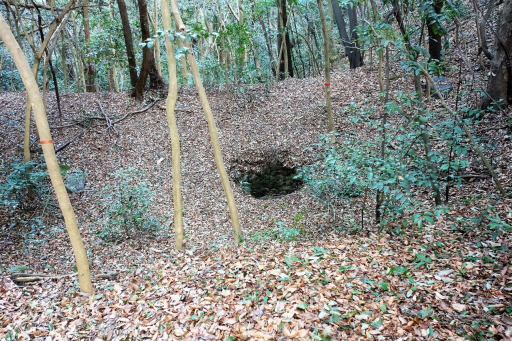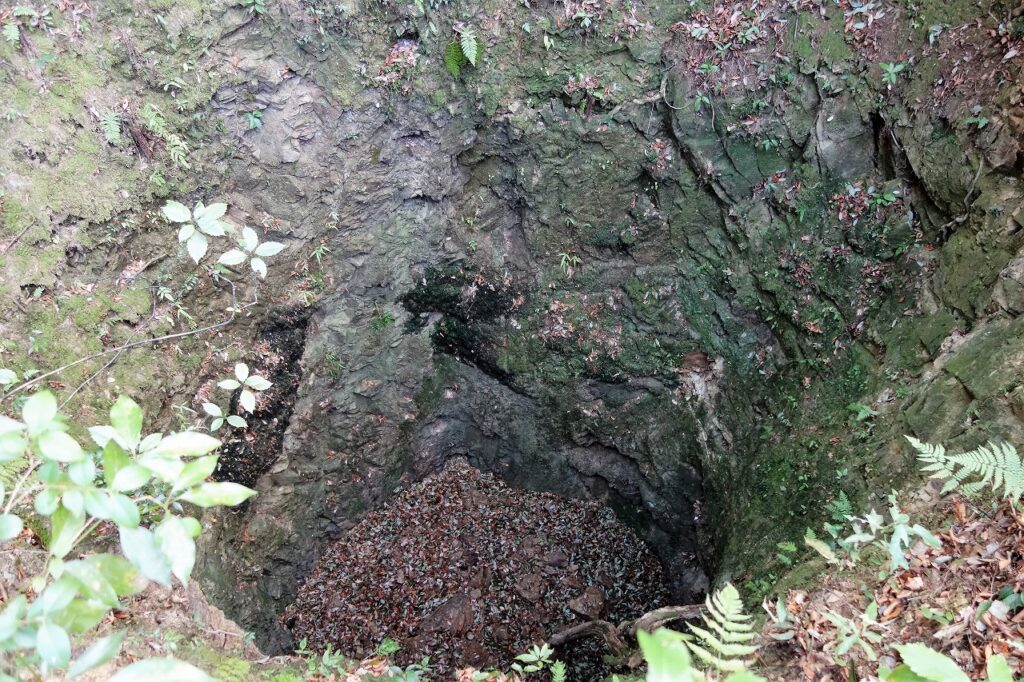 城跡には井戸が3基あり、そのうち本丸の「天守の井戸」は岩盤を穿った巨大な井戸で、見る者を圧倒する。松田氏の威勢を象徴するかのような遺構で、私はこれを見るために登城したと言っても過言ではない。