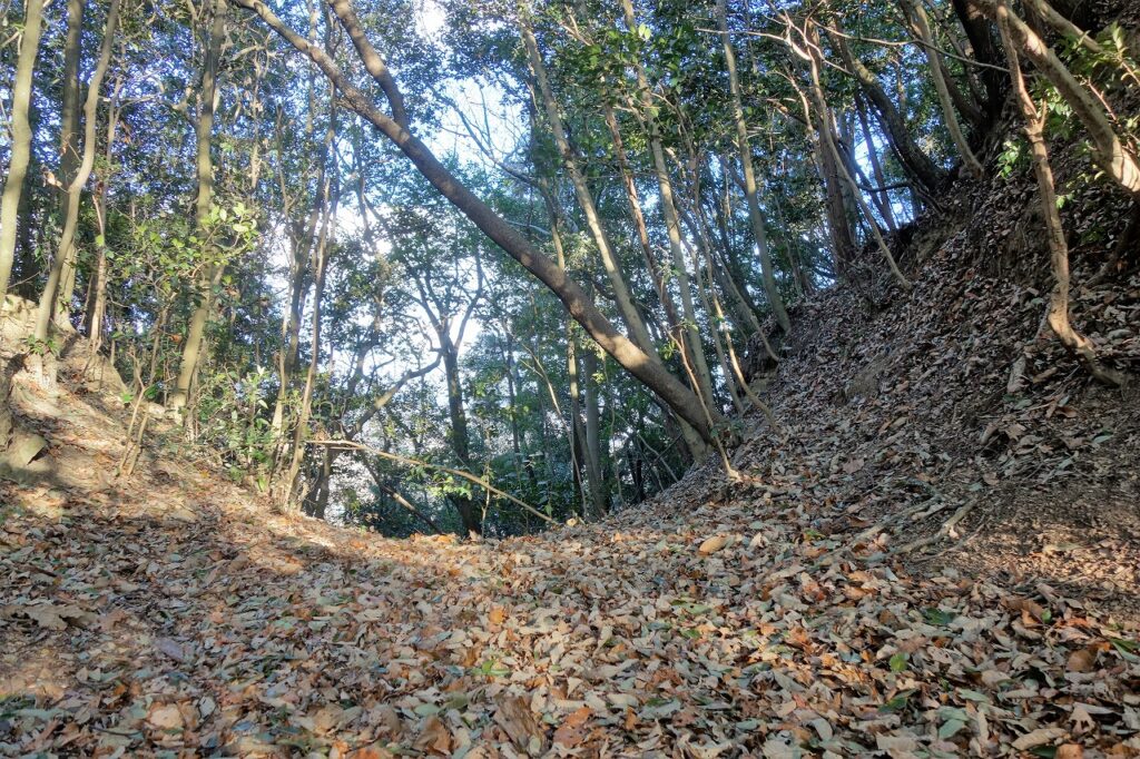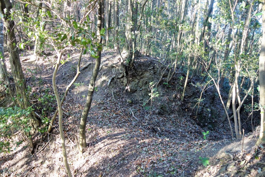 北の丸の北尾根は二条の堀切で遮断している。