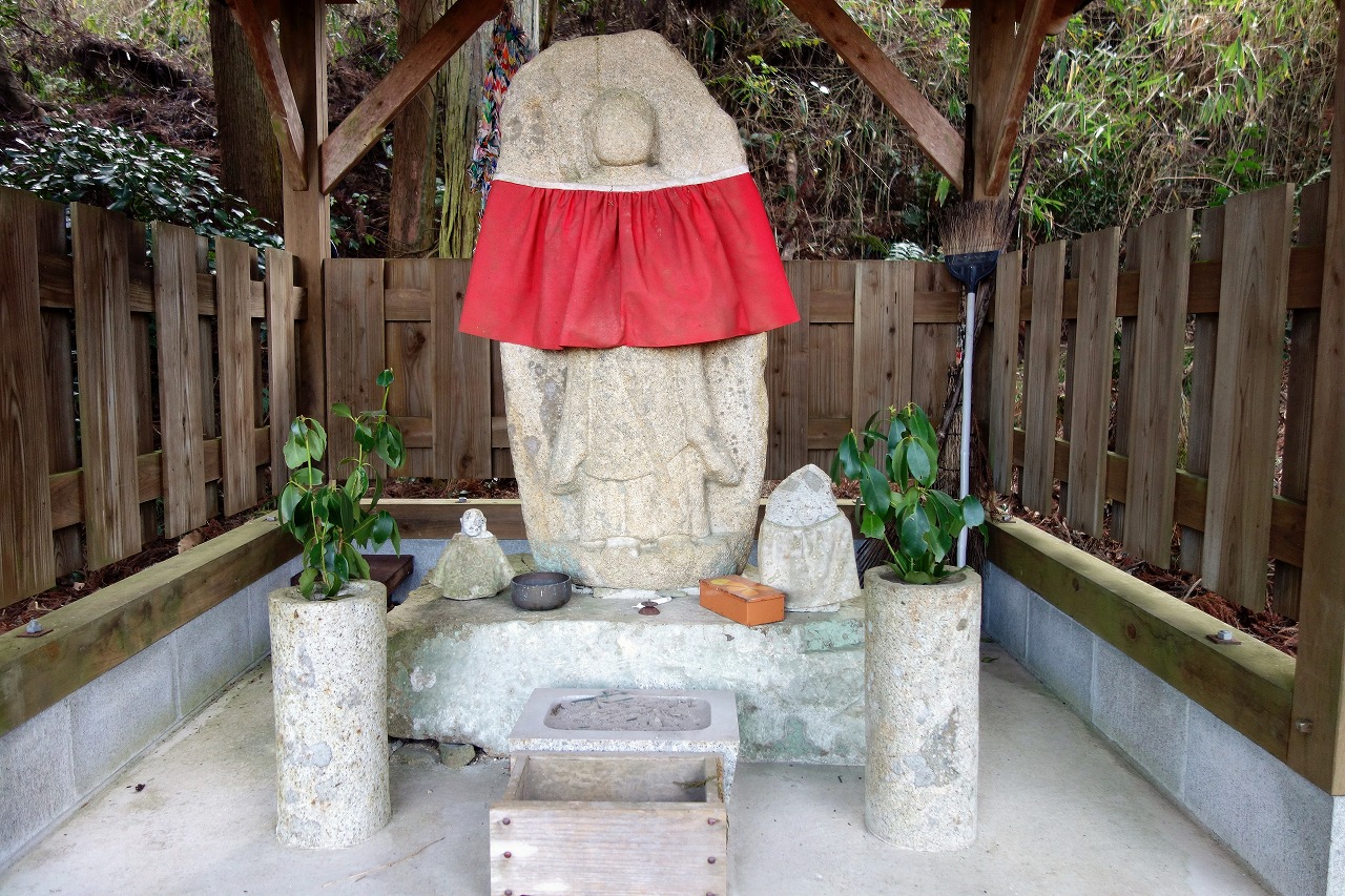 箕地峠に立っ花崗岩製の延命地蔵である。
