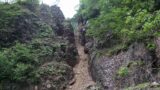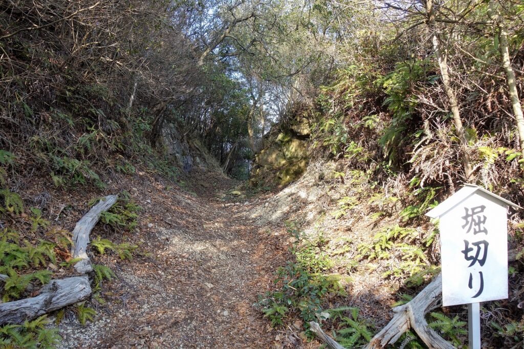 背後に続く尾根には、岩盤を開削した堀切が設けられている。重機のない時代に、どのようにして山を削り、岩を穿ったのか。