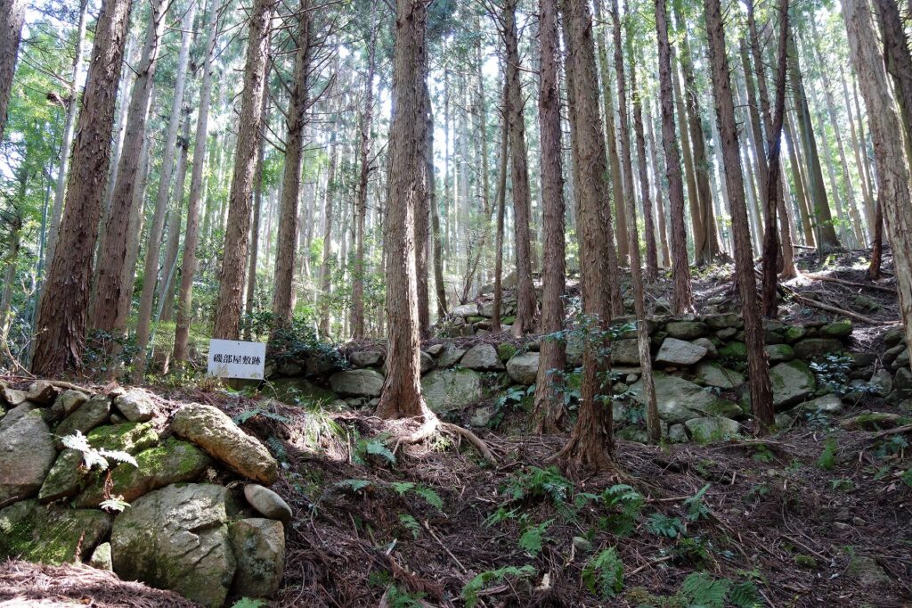 景石城の西麓に「磯部屋敷跡」がある。何段もの平坦地と石垣が残るのみだが、往時は権力の中心地だったのだ。