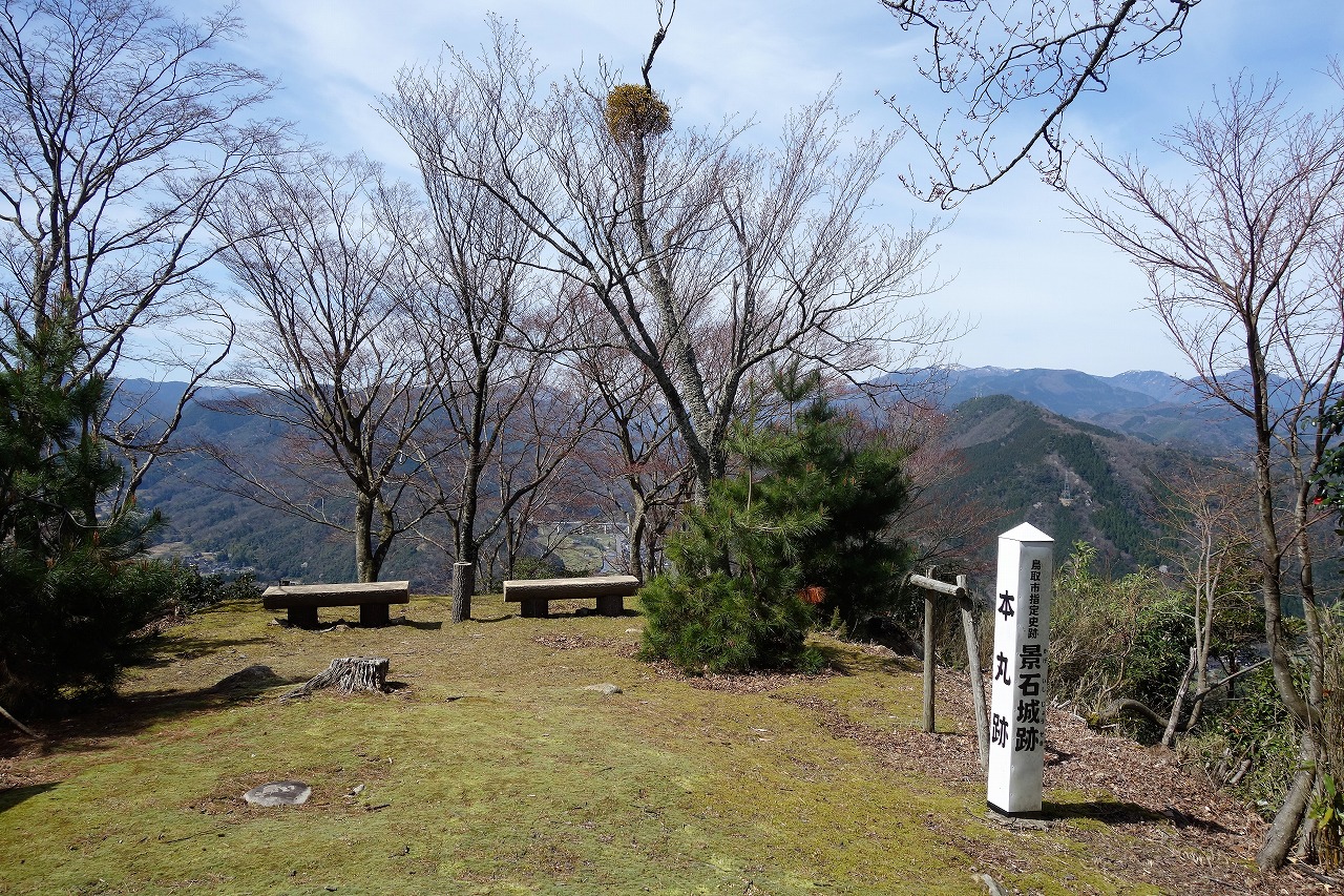 城主の磯部兵部太輔こと磯部康氏は山名一族で但馬の武将。秀吉の鳥取攻めに従って活躍し景石城主となった。20年にわたる治世は天下統一戦に朝鮮出兵と戦いが続いていたから、本丸からの眺望を楽しむ余裕はなかったかもしれない。