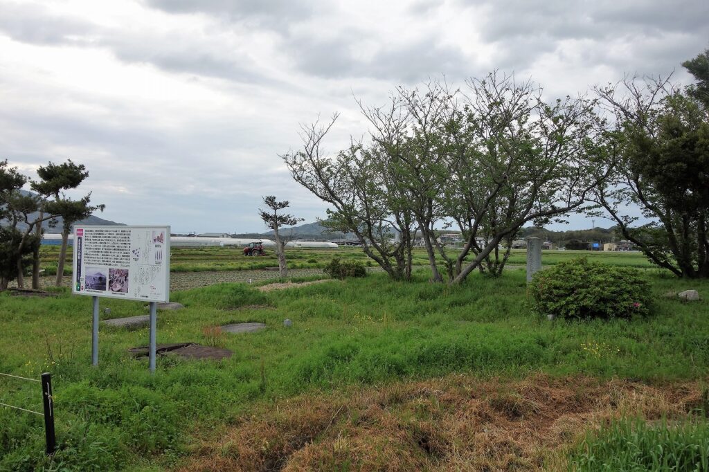 糸島市志登(しと)に国指定史跡の「志登支石墓群」がある。遠くの山の稜線は糸島富士(筑紫富士)の可也(かや)山である。