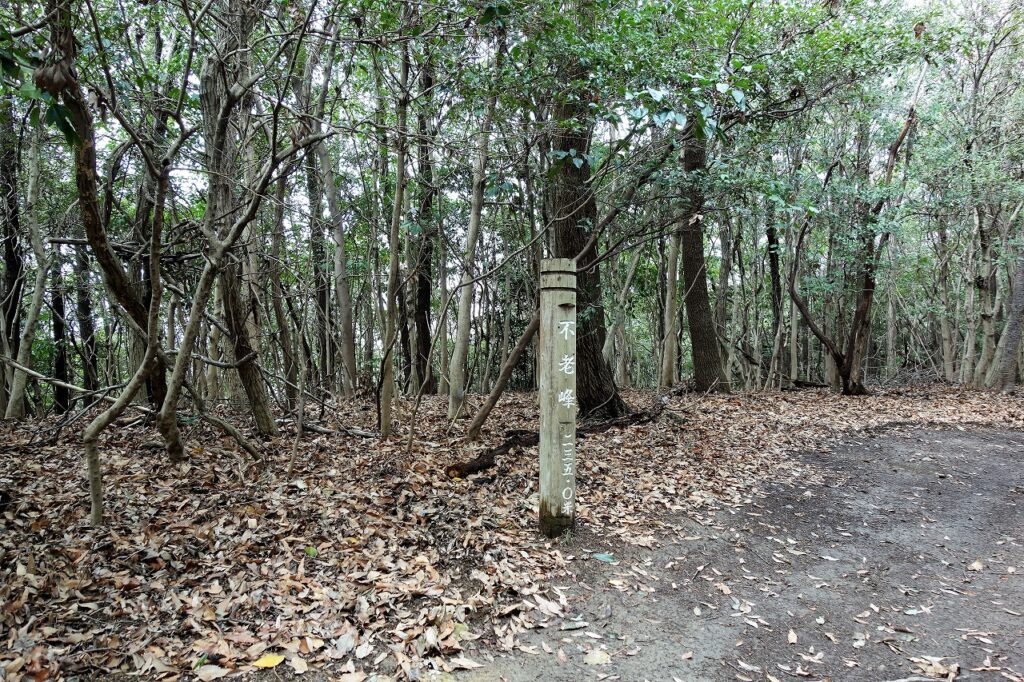 広い遊歩道を南へ進むと「不老峰」二三五・〇米がある。気持ちの好い散策コースだ。さらに南へ歩こう。