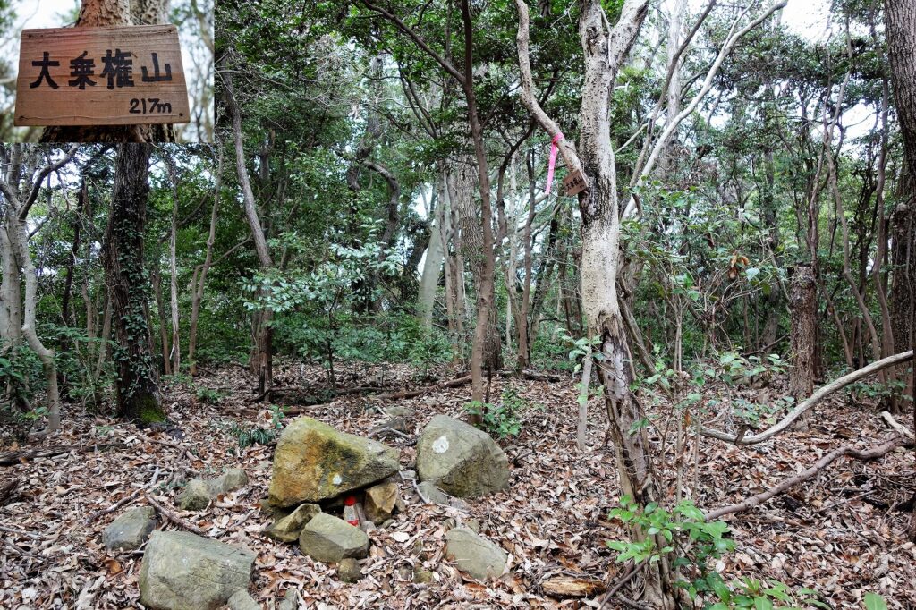 玉野市八浜町八浜と八浜町波知の境に「大乗権山」があり、標高は217mである。