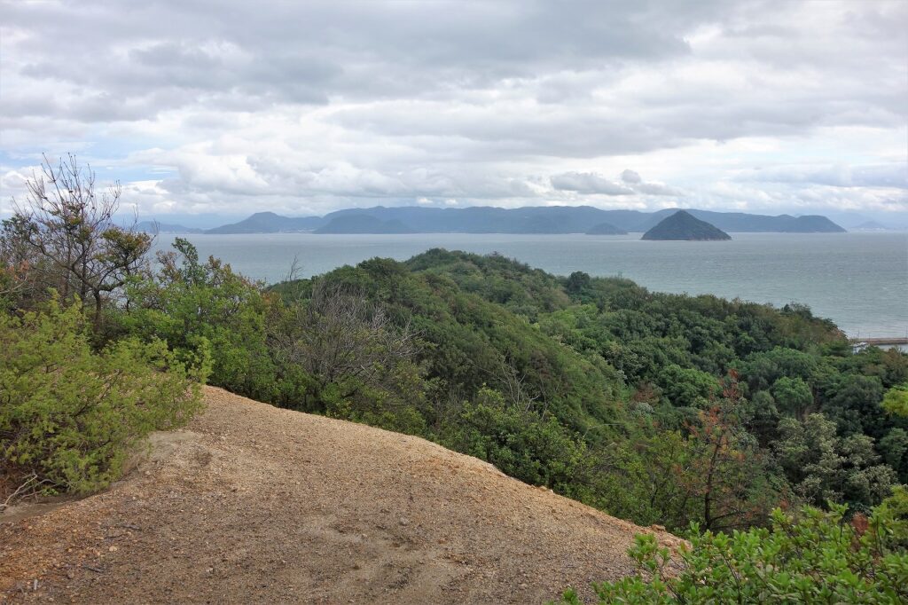 写真は主郭となる北峰から南峰を見ており、その向こうには大槌、小槌の島、そして五色台が見える。ここは本州四国間の海上距離が最短で、瀬戸大橋の構想ルートに選定された場所であり、通過する船舶を一望できる。この有利な地理的条件を海賊が見逃すはずがない。