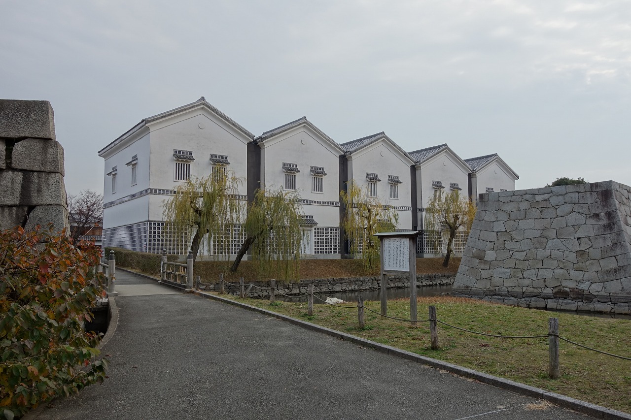 この平成の復元は、明治時代の古写真をもとに、古絵図をはじめとする文献類、発掘調査の成果を総合的に検討して赤穂産の花崗岩による桝形石垣、国産材を使用して昔どおりの伝統工法によって、往時の姿によみがえらせています。