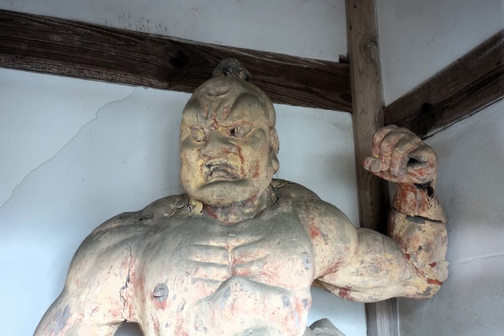 この西方院の仁王門の金剛力士像・二躯は室町時代の典型的な寄木造の極彩色の仁王像である。右側が口を開いた阿形像で、高さ一五九センチ、左側が口を閉じた吽形像で、高さ一五三センチ である。