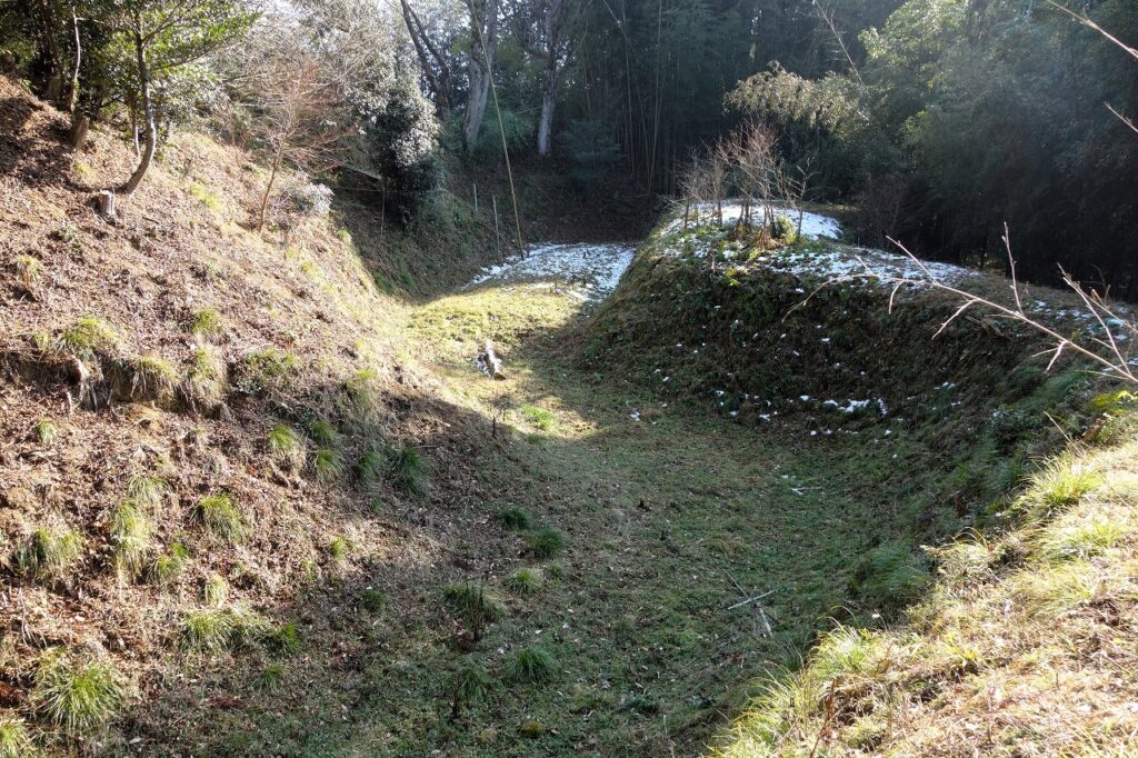 大規模な横堀は一見の価値があり、この城一番の特徴と言えよう。緩斜面の西側防御を、横堀で補強しているのだ。
