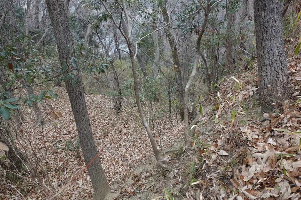 堀切の底である。この真下くらいに吉備新線のトンネルがある。