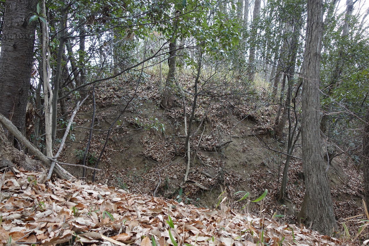 南北二つの曲輪があり、北から進入すると南曲輪の手前に二条の堀切がある。奥の堀切は息を呑む迫力で現れる。そろりそろりと下りてみよう。