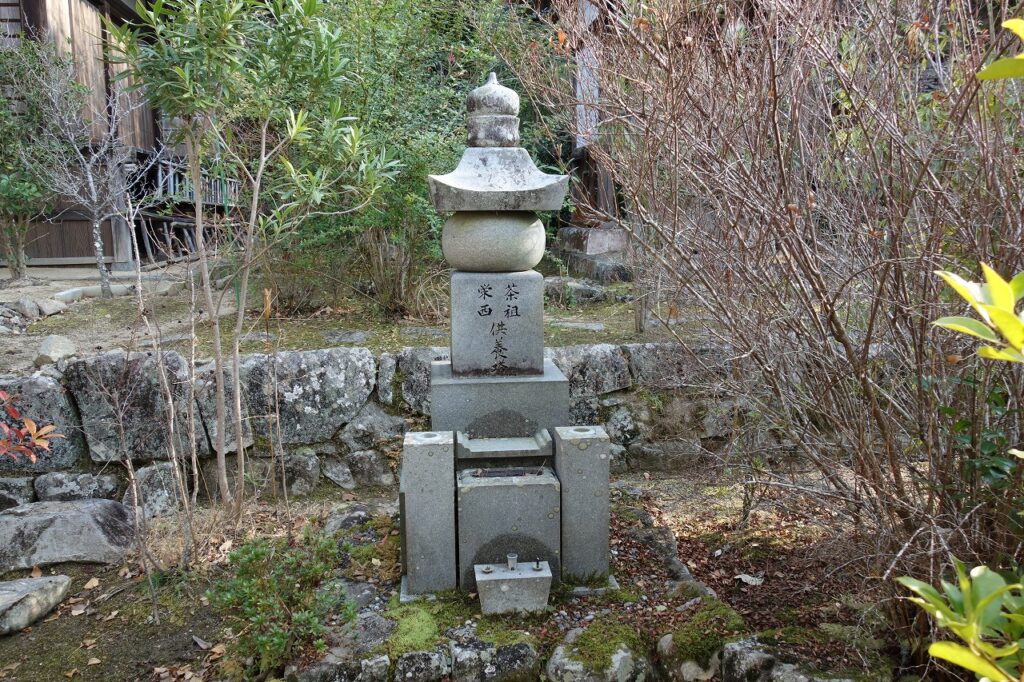 祖師堂の前に「茶祖栄西供養塔」がある。栄西禅師の墓は京都建仁寺の開山堂だが、一般公開されていない。これに対して安養寺の供養塔は何時でも誰でもお参りができる。