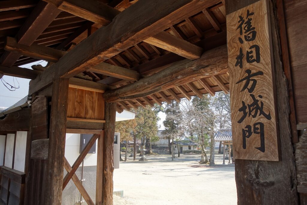この門ならば、相方城はやはり近世城郭だったに違いない。二つの門のうち、東側(写真では上側)については説明板があるので読んでみよう。