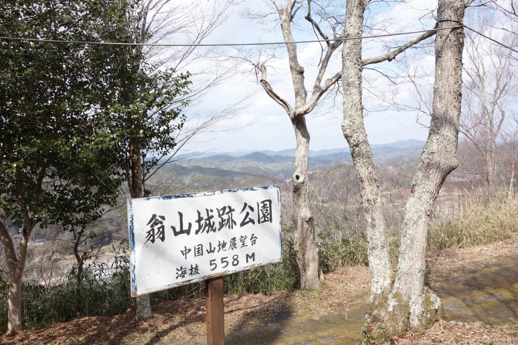 かなり登るだけあって、見事な眺望である。車で行けるのがありがたい。眼下の校舎は上下北小学校で、さとう宗幸作詞の校歌には「あおぎ見れば翁山」という一節がある。ふるさとの山なのだろう。いったいどのような歴史があるのか、説明板を読んでみよう。