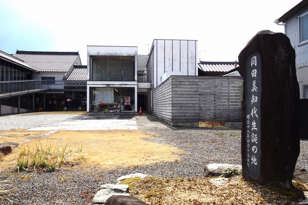 府中市上下町上下の府中市上下歴史歴史文化資料館の中庭に「岡田美知代生誕の地」と刻まれた石碑がある。「明治十八年四月十五日生」とあるから、野上弥栄子や柳原白蓮と同い年である。