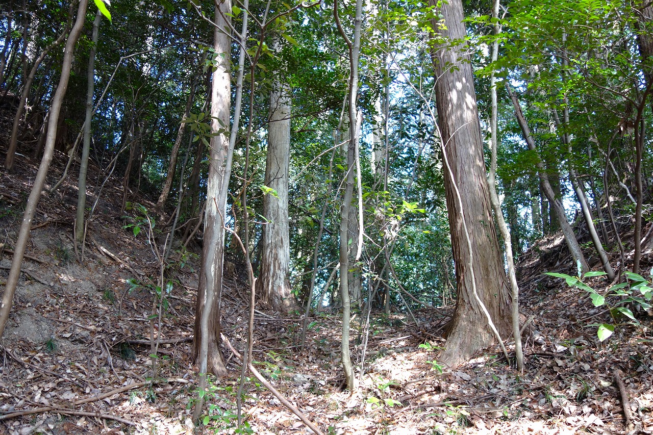 標高296mだから、鳥なら山城を眼下にできるだろう。位置するのは打穴庄を貫通する県道70号と誕生寺から続く中国自然歩道が合流する地点である。古くからの要衝だったのだろう。