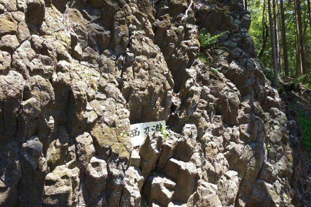 山腹には柱状節理が見られ、これは「西乃瀧」と名付けられている。