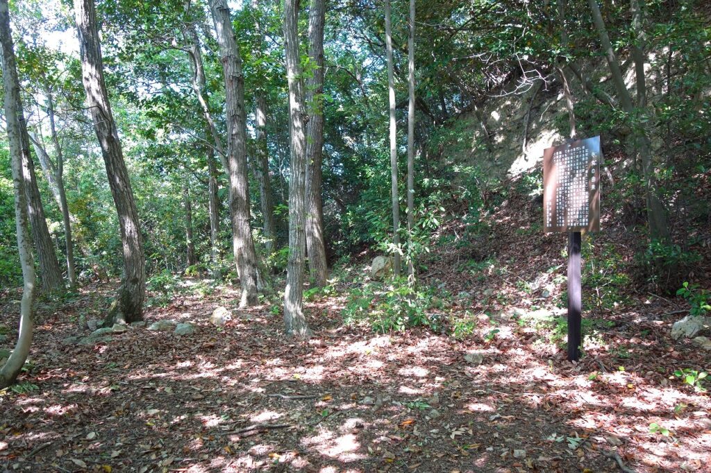 庄氏、三村氏、毛利氏という権勢の変遷が分かる。毛利輝元の本陣が置かれたことは、まさにこの城の拠点性を象徴している。真備側の登城口には、次のような説明板がある。