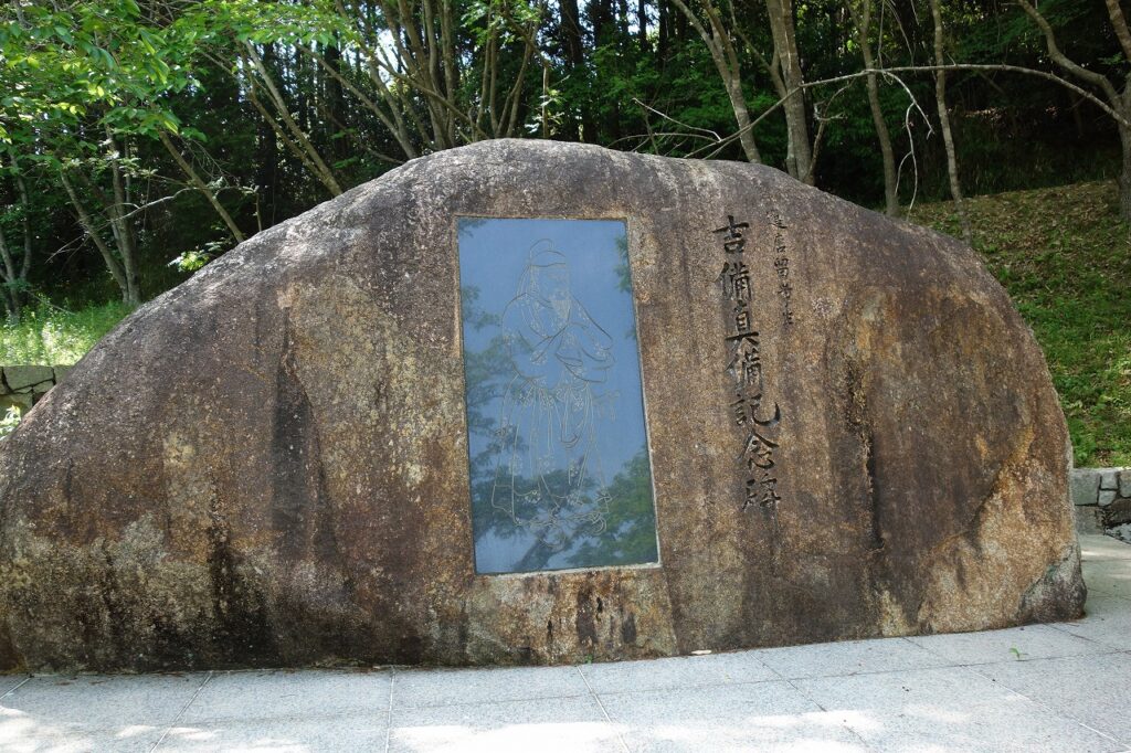倉敷市真備町箭田のまきび公園に「吉備真備記念碑」がある。公園は昭和62年に吉備寺に隣接して整備された。その前年、中国西安市に真備公の記念碑が建立された。これを模して建立されたのが、真備町の記念碑である。線刻肖像の原画は、歴史画の泰斗小堀鞆音(こぼりともと)が描き、吉備寺に奉納した作品である。