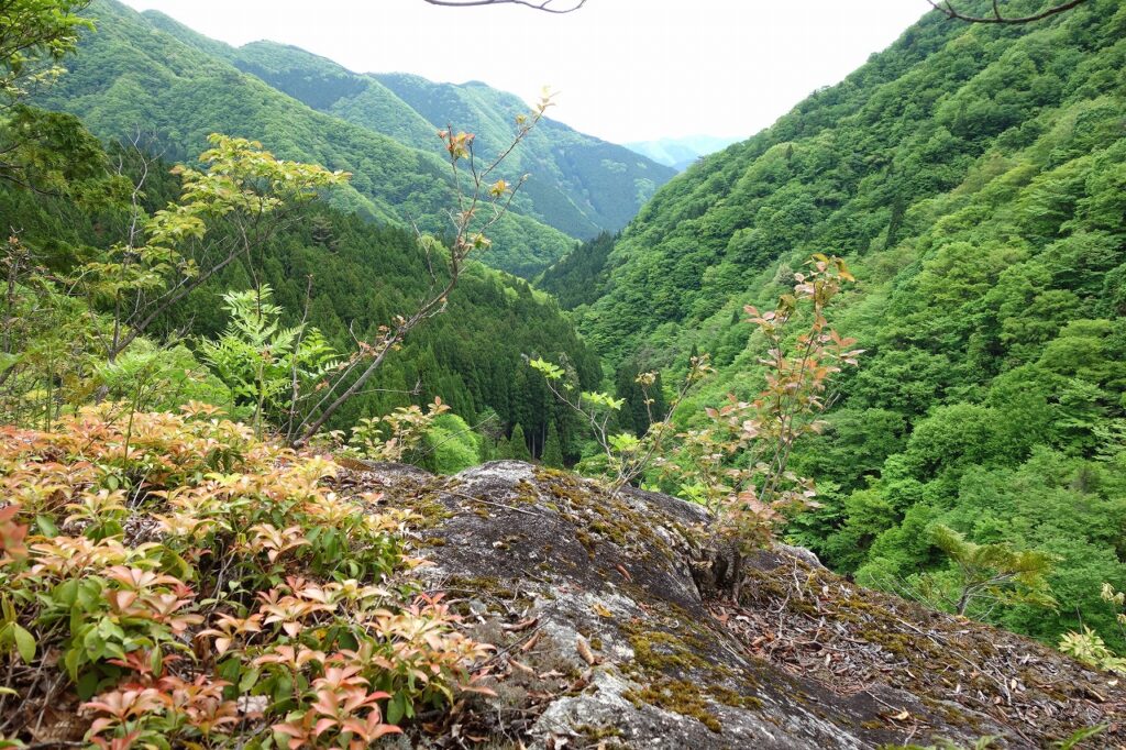 岩の上は草木が繁茂しているが、比較的平らで横行渓谷が一望できる。追っ手の動きが見えるかのようだ。