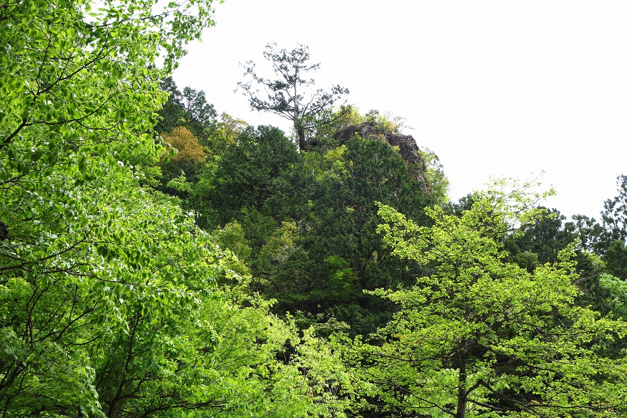 季節は春、進むこと能わずだった雪道は新緑の山道へと変わっていた。東屋近くに駐車すると、城に通じるであろう岩に取り付いた。
