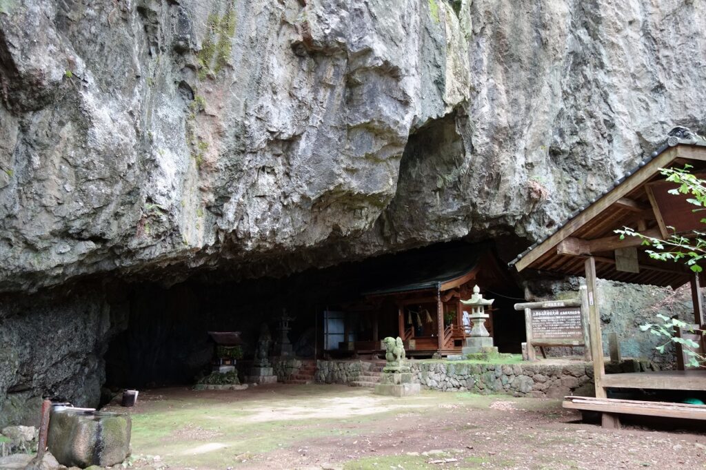 ほら穴には、多祁伊奈太岐佐耶布都(たけのいなたきさやふつ)神社(岩屋権現)が祀られており、原始信仰の名残りをとどめています。