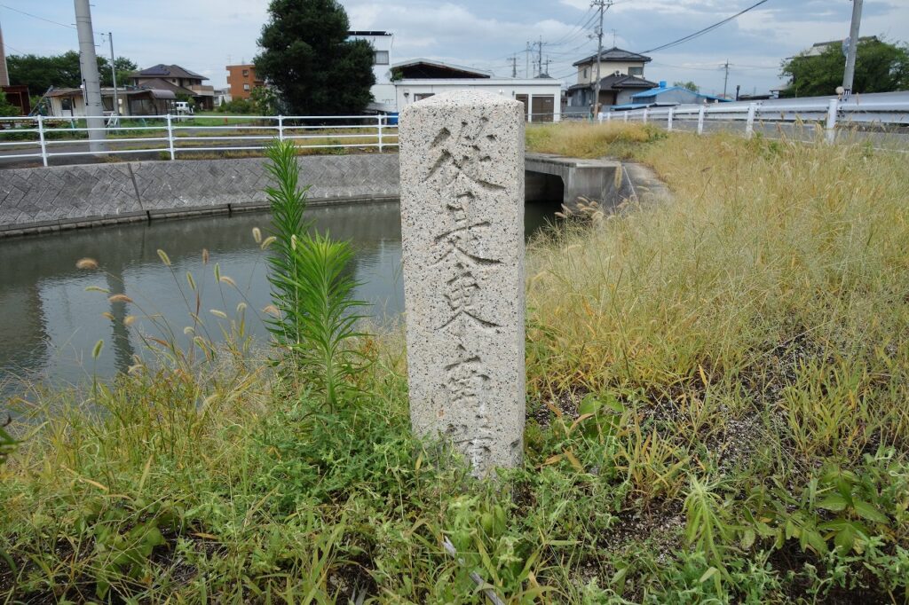 「従」らしき文字は見えたが、「従是」までは視認できるらしい。毎日多くの人が電車で通過しているが誰も気付かない。川向うなので線路脇からもよく見えない。もっとも見つけにくい史跡である。