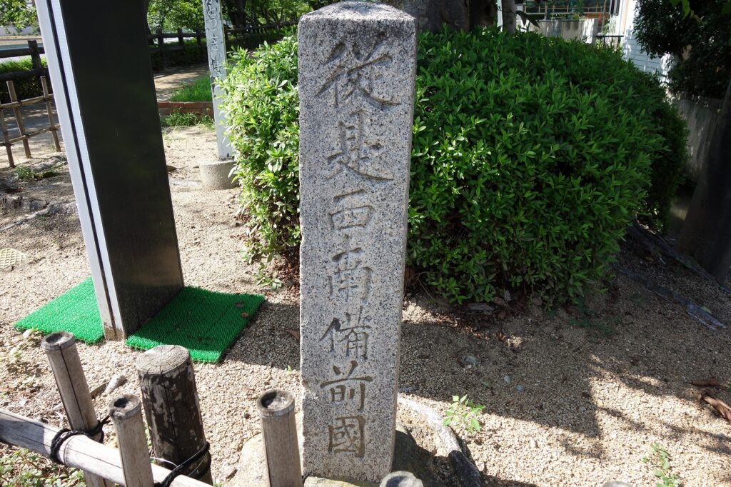 岡山市南区箕島、同区妹尾、同区内尾の境に「第四国境標石」がある。「従是西南備前國」と示されている。