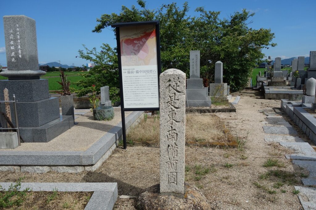 岡山市南区大福、同区藤田、同区東畦の境に「第一国境標石」がある。「從是東南備」の文字が確認できる。