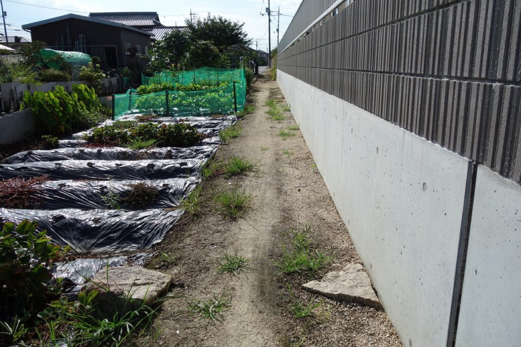 この畦にある対をなす三角形の置石は、備前・備中の国境を示す標石を補うために置かれたものと思われます。