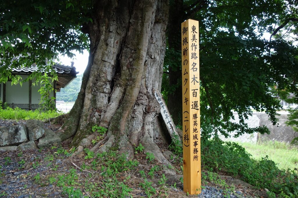 東美作路名木百選はかつての勝英地方振興局が選定したもので、今の勝英地域事務所はその後身である。気になるのは樹齢が392年と一桁まで数えられていることだ。令和4年すなわち2022年から起算すれば、芽吹いたのは1630年すなわち寛永7年となる。東京大学の源流はこの年に設立された林家の私塾だというから、東大と歩みを共にしてきたわけだ。本当だろうか。