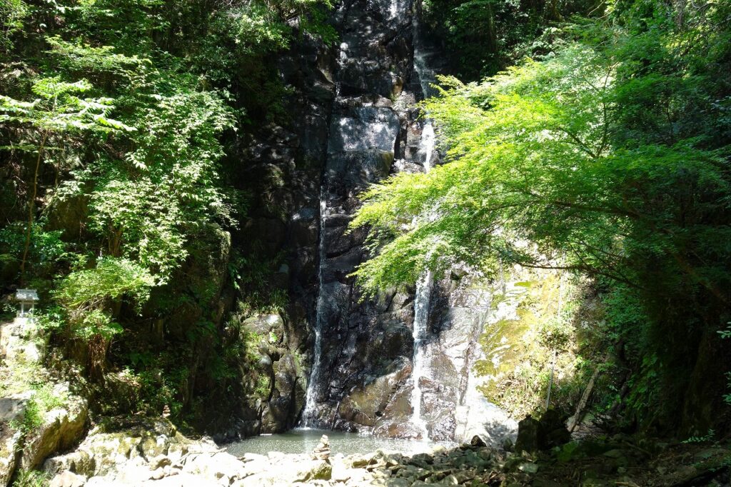 登山口に「千早の滝」がある。二条の滝水が涼を誘う。この日は水量が少なかったようだ。