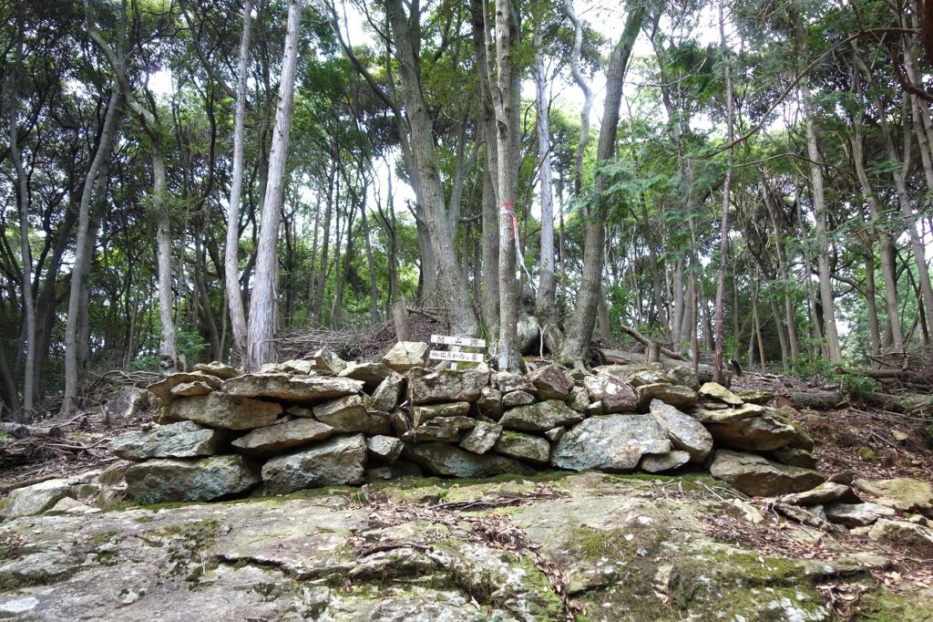 鑑真和尚を開山と敬慕する真木山は、かつて65坊建ち並ぶ大寺院だったという。確かに山上は広く、石垣が整えられた平坦地が多い。ただ表土は荒れるか草木に覆われており、かつての面影を偲ぶのは難しい。