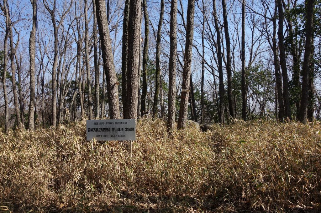 天正十年(一五八二)四月、織田信長の命により、備中へ進攻した秀吉の左翼をかためる弟・羽柴秀長が山陽道からの毛利軍に対して布陣した所である。加茂・日幡の城を見下し、庭瀬・松島城攻めの味方の動きも一望におさめていた。