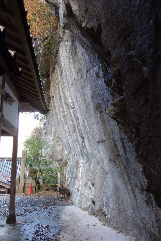 真庭市上中津井の金刀比羅神社に市指定天然記念物の「屏風岩」がある。まさに壁、乗り越えられない壁である。