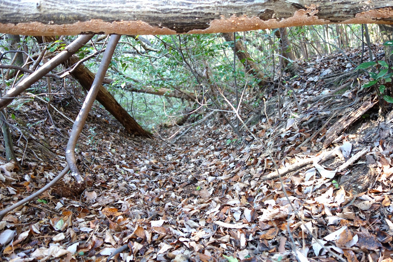 山塊の南端に位置しており、背後の尾根を堀切で遮断し、正面には高い切岸を持つ曲輪が設けている。眺望が利けば県道倉敷成羽線が見えるはずだ。北に向かって成羽から松山、南に向かうと山陽道沿いの矢掛に出ることができる。